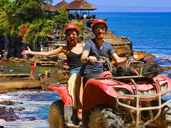 ATV Ride and Tanah Lot Tour packages is the entrancing Bali Combination Tour Packages we outlined by provide for both of you distinctive experience of riding ATV bicycle through the beaten track and afterward going to Tanah Lot Temple and other visitor end. Is extraordinary and noteworthy visit packages we offer to make your vacation more amazing in this Bali ATV Ride and Tanah Lot Tour packages. To start the adventure, you will be riding the ATV bike with our expert ATV Ride instructor through the beaten track with length of time 2 hours. after the journey of atv ride finish we will having lunch with Indonesian food, after lunch finish we continue this adventure to visit Taman Ayun Temple is Balinese Hindu sanctuary in Mengwi town, this sanctuary has excellent perspective with big fish lakes encompass the sanctuary and this sanctuary was construct by King of Mengwi town. At that point we proceed the tour to visit our last site in this astonishing Bali ATV ride and Tanah Lot Tour is the Tanah Lot Temple, is Balinese Hindu sanctuary spotted in Tabanan Village with Breathtaking perspective of Indian Ocean, the sanctuary was popular along the tourist and was the most pavorite place to visit in Bali.