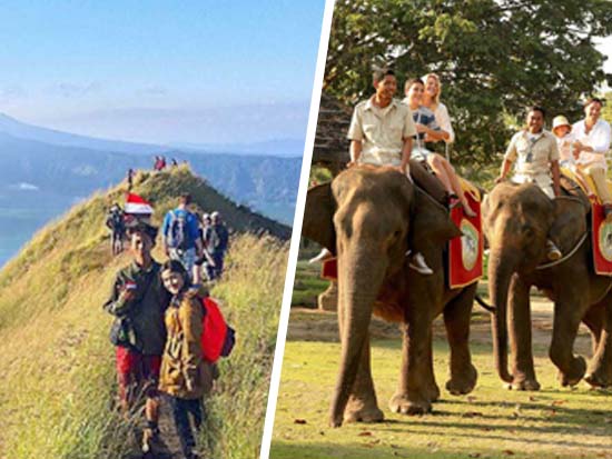 Trekking and Elephant Ride Tour is an Bali Double Activities Tour Packages we designed to make double experience while your holiday by doing Mount Batur Sunrise Trekking Tour and then we continue to riding an Elephant at the parks for 30 minutes. Firstly the amazing Bali driver will pick up in early morning to start the doubke adventure, firstly we will do the mount batur sunrise treeking tour, we will arrive at trekking start point at 04,00 am and start the 2 hours trekking to the top, after arrive at the tio you will amazed with view and scenery of volcano and the sunrise, while enjoy the view, our trekking guide will serve the breakfast consist of bread and egg, after finish enjoy breakfast and see the amazing view we will heading back to finish point and will take around 2 hours to go back. And then we will continue your adventure by allowed you to riding the 30 minutes riding an eleohant through the jungle and passed the local village to see daily activitis of local community village.