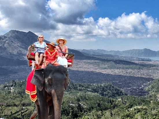 Elephant Ride and Kintamani Tour is a Bali Combination Tour Packages by offer Double exciting experience of Riding an Elephant and see the view of Mount Batur Volcano at Kintamani Village. Is amazing experience you will have during Bali Elephant Ride and Kintamani Tour which is get chance to get closed with biggest animals (elephants) and riding on the top and the tour will continue to Kintamani Village, exacly at Penelokan village to see the beautiful scenery of activie mount Batur volcano and also you will see the amazing beautiful Lake Batur from Penelokan village. Places of interest or tour itinerary will be visit during the trip is Visiting Bali Elephant Parks for enjoy ride the Elephant for 30 minutes through the jungle, rice paddy and passed the Balinese local village, then you will enjoy having lunch at restaurant, after lunch we will continue the tour to visiting Kintamani Village, exactly visiting Penelokan Village at Kintamani District, from penelokan we will see the beautiful and amazing view of active volcano Mount Batur and Lake Batur, is great view, you can take picture of Kintamani volcano as much as you like and is free, Then tour will continue to visit Coffee Plantation where we can see variety of coffee, including coffee luwak process making, Then tour continue to visit Tegallalang rice terrace, located around 45 minutes from Kintamani village, in here you will rice paddy scenery with small valley, the rice terrace here is famous for tourist destination, mostly guest visit after do some trip to Kintamani Volcano.